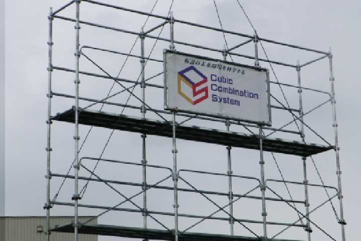 - くさびにはそりが付いており足場組み立て後、中間部分でも布材の一時取り外し・取付けが簡単に行えます。