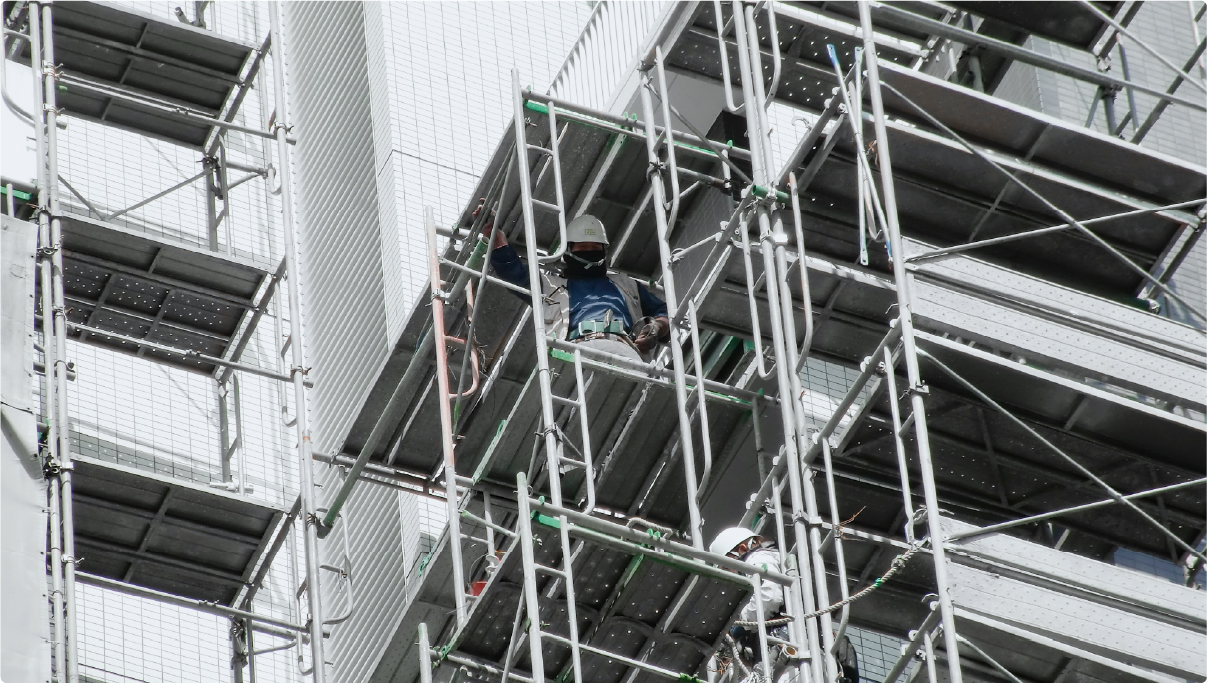 高所にある足場だからこそ、少しでも不備があったらすぐに大きな事故につながります。職人が細部にいたるまで細かくチェックして頑丈で安全な足場工事の施工を致します。